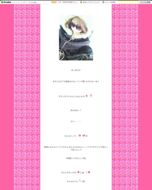 T きのうさDTの意味わかるー?って聞いたやんかーあ? ダウンタウンさんじゃないから あれはねー? どう・・・・ なんちゃってー 笑 ttp://ameblo.j...